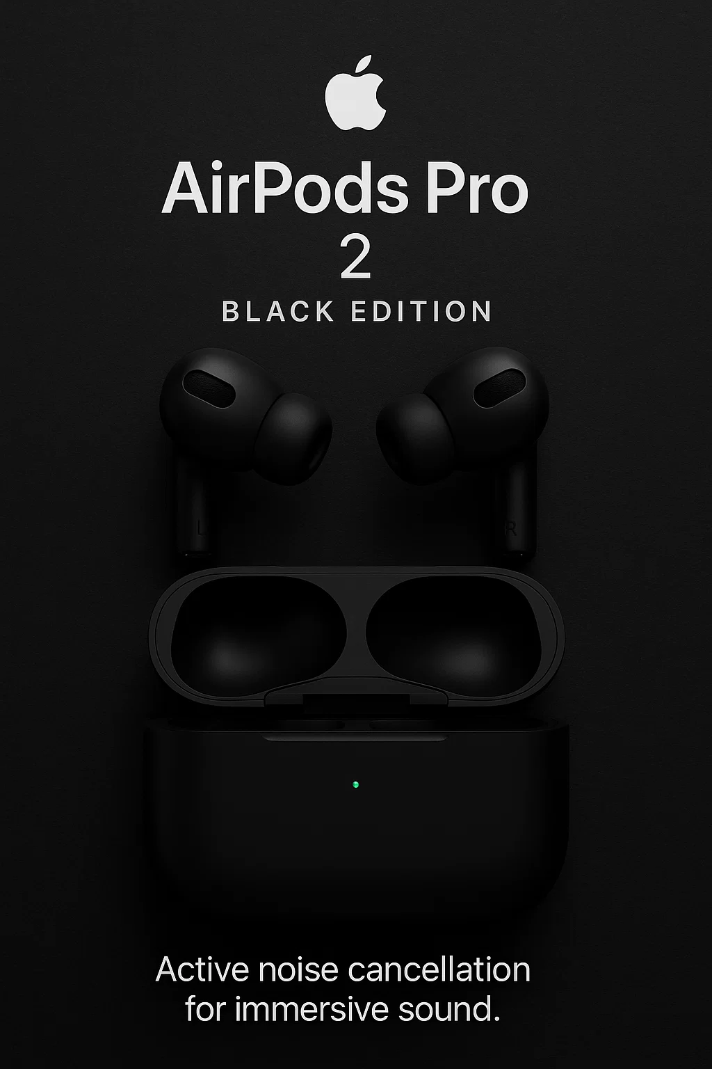 Meet the AirPods Pro 2 Black Edition where stunning design meets powerful performance. The bold matte-black finish gives these AirPods a fresh, modern look that stands out from the crowd. Built for those who love quality sound with a touch of style, these earbuds turn every moment into a premium audio experience.